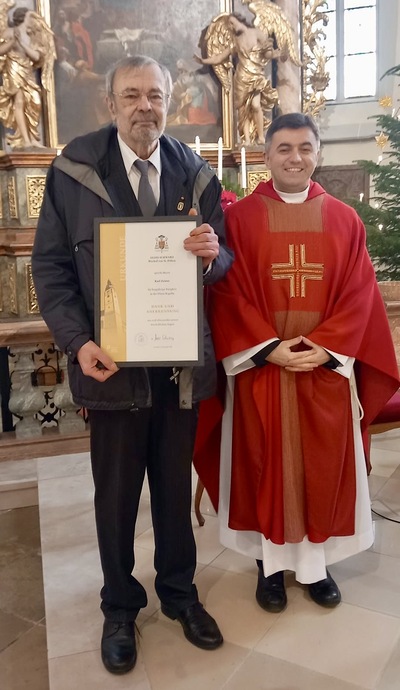 Herr Karl Zeiner ein Dank - und Anerkennungsschreiben der Diözese. Pfarrer Josef sprach würdigende und segnende Worte.